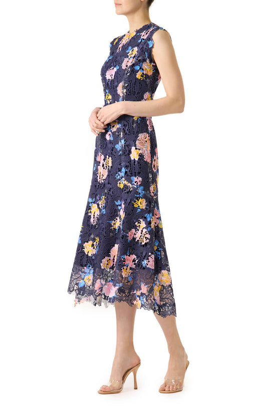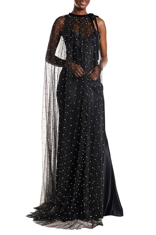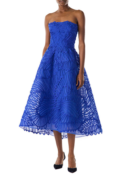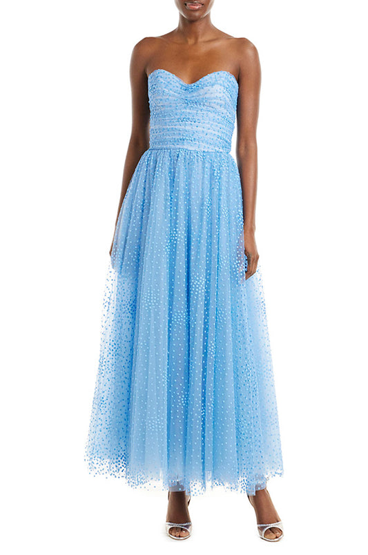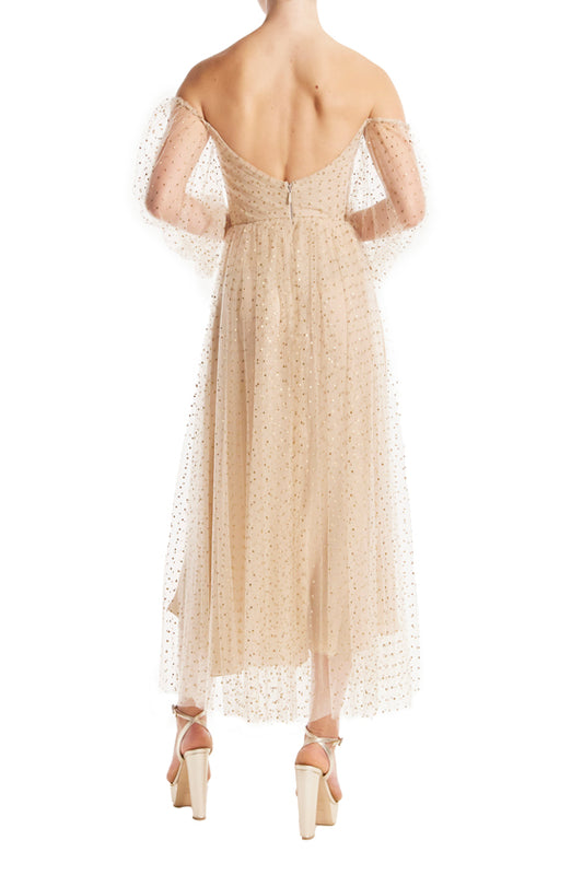 Dotted Tulle Off-the-Shoulder Tea Length Dress